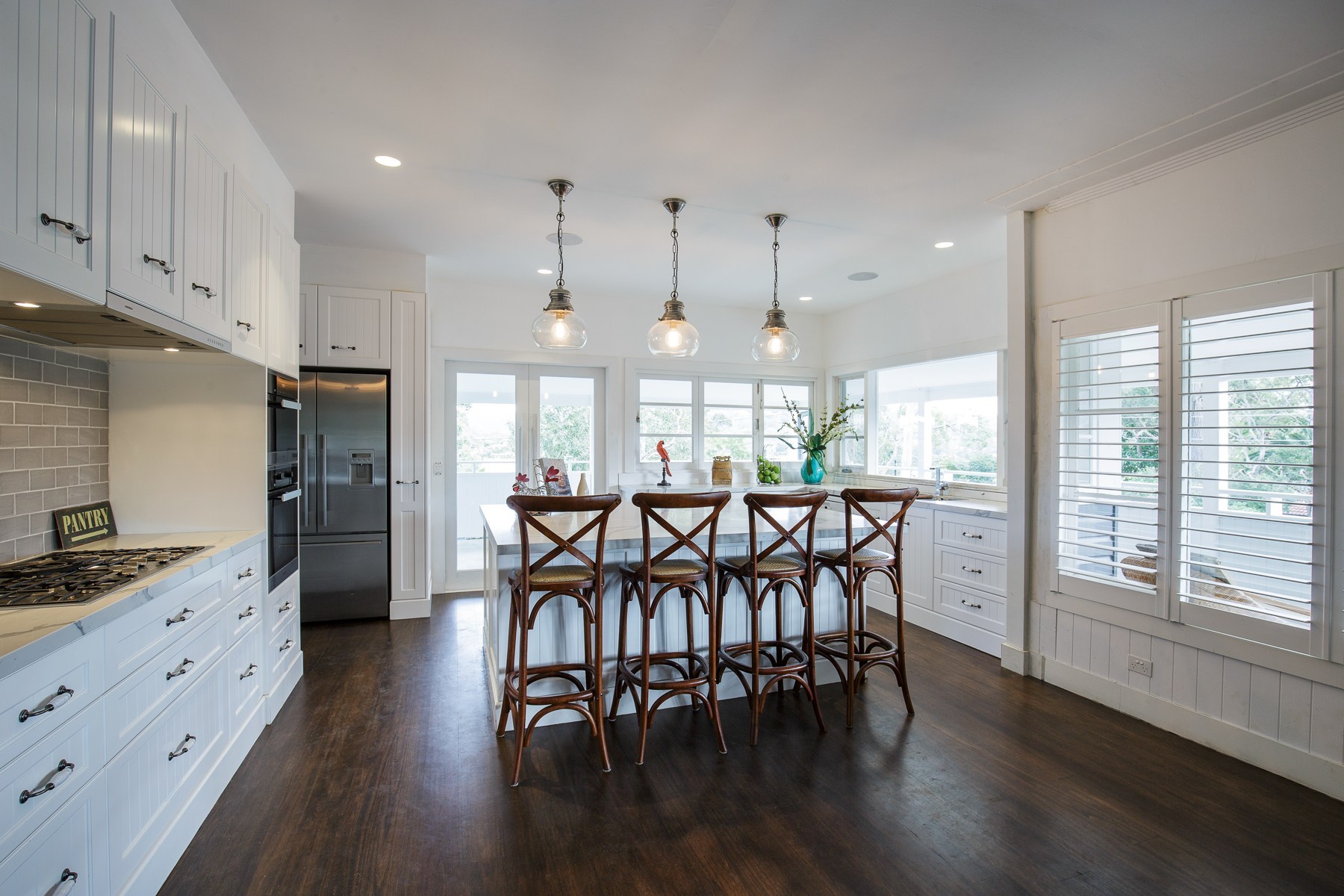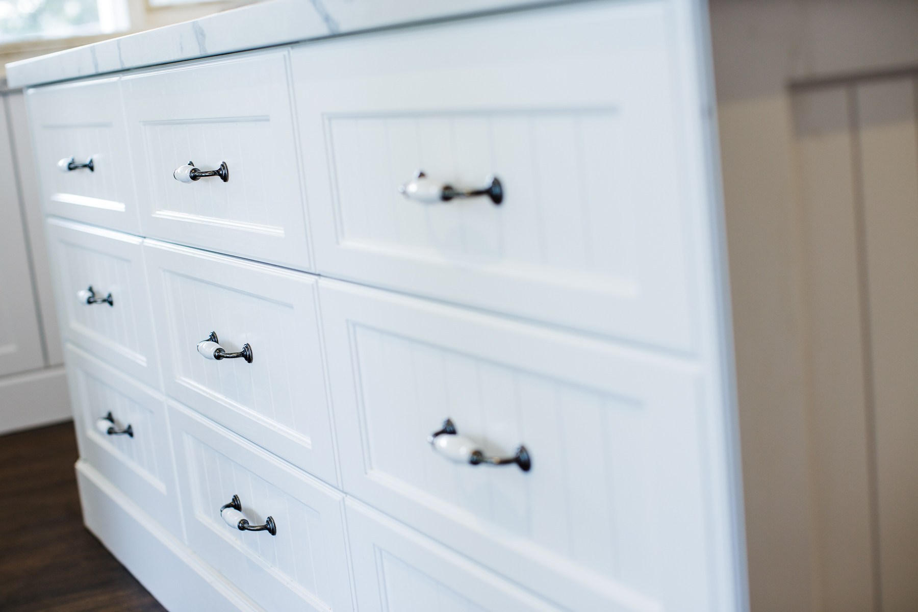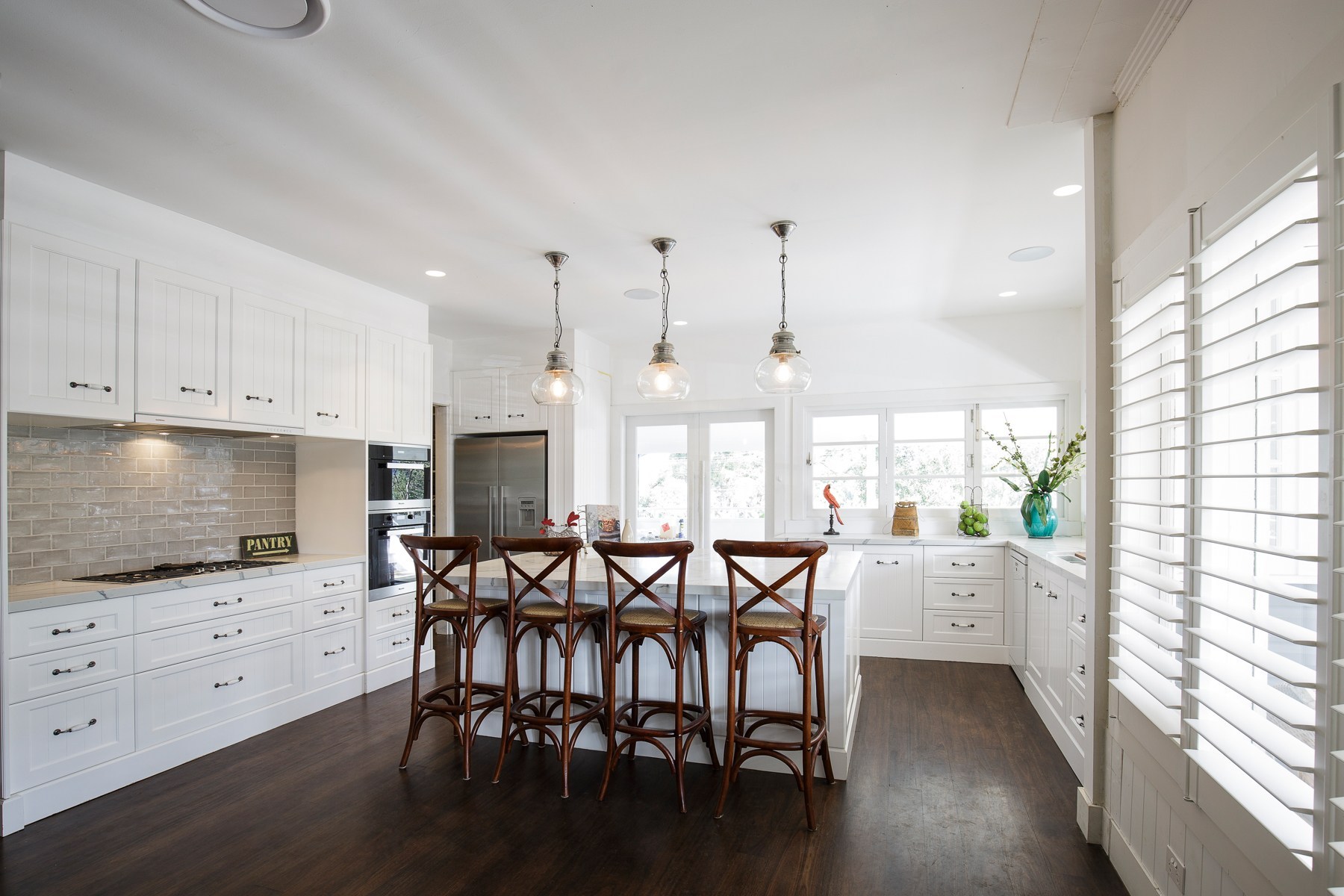Stunning, modern and luxurious house fitout, with top line materials, polyurethane finishes, designer laminates, soft close hardware and Caesar stone Raw Concrete and Organic White benchtops. All hardware used including soft-close hinges and runners were from major manufacturers such as Blum, Hettich and Hafele.