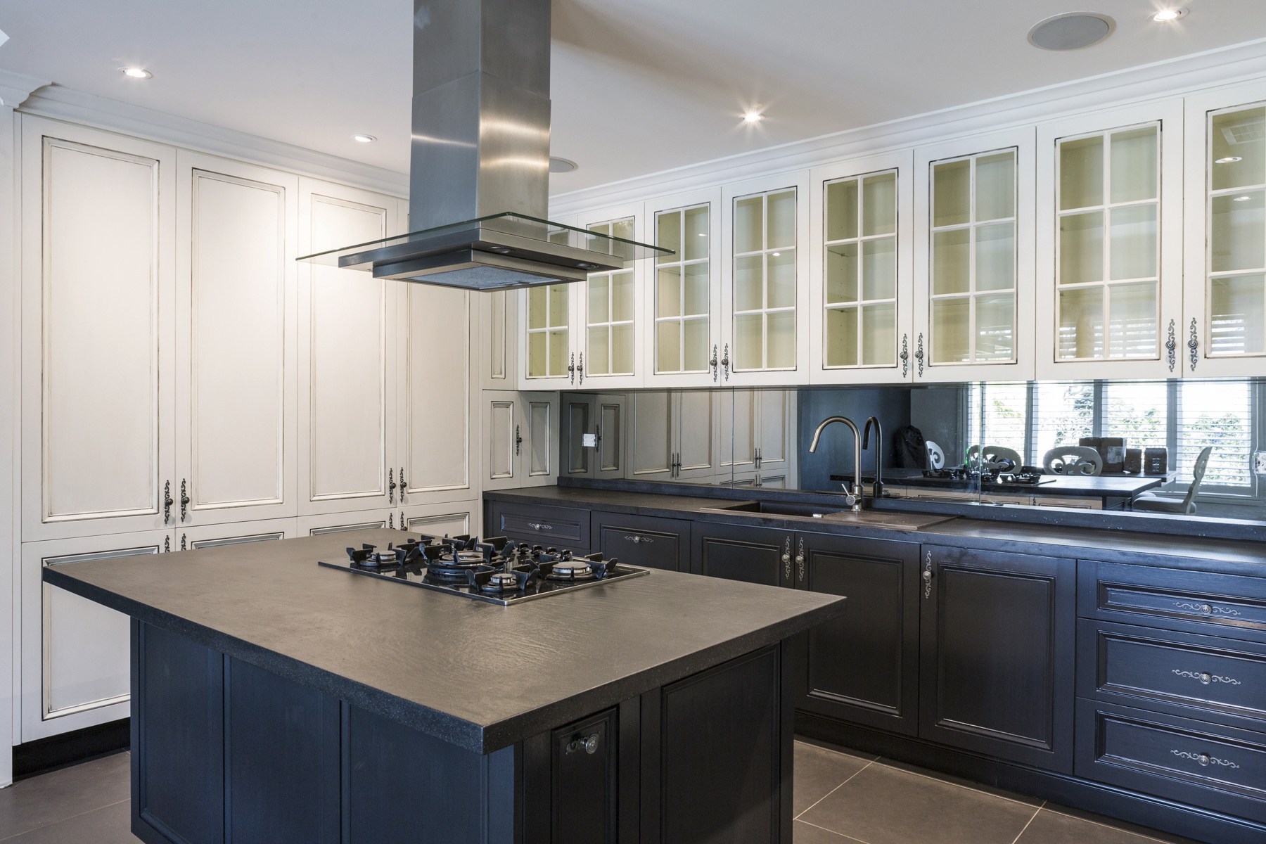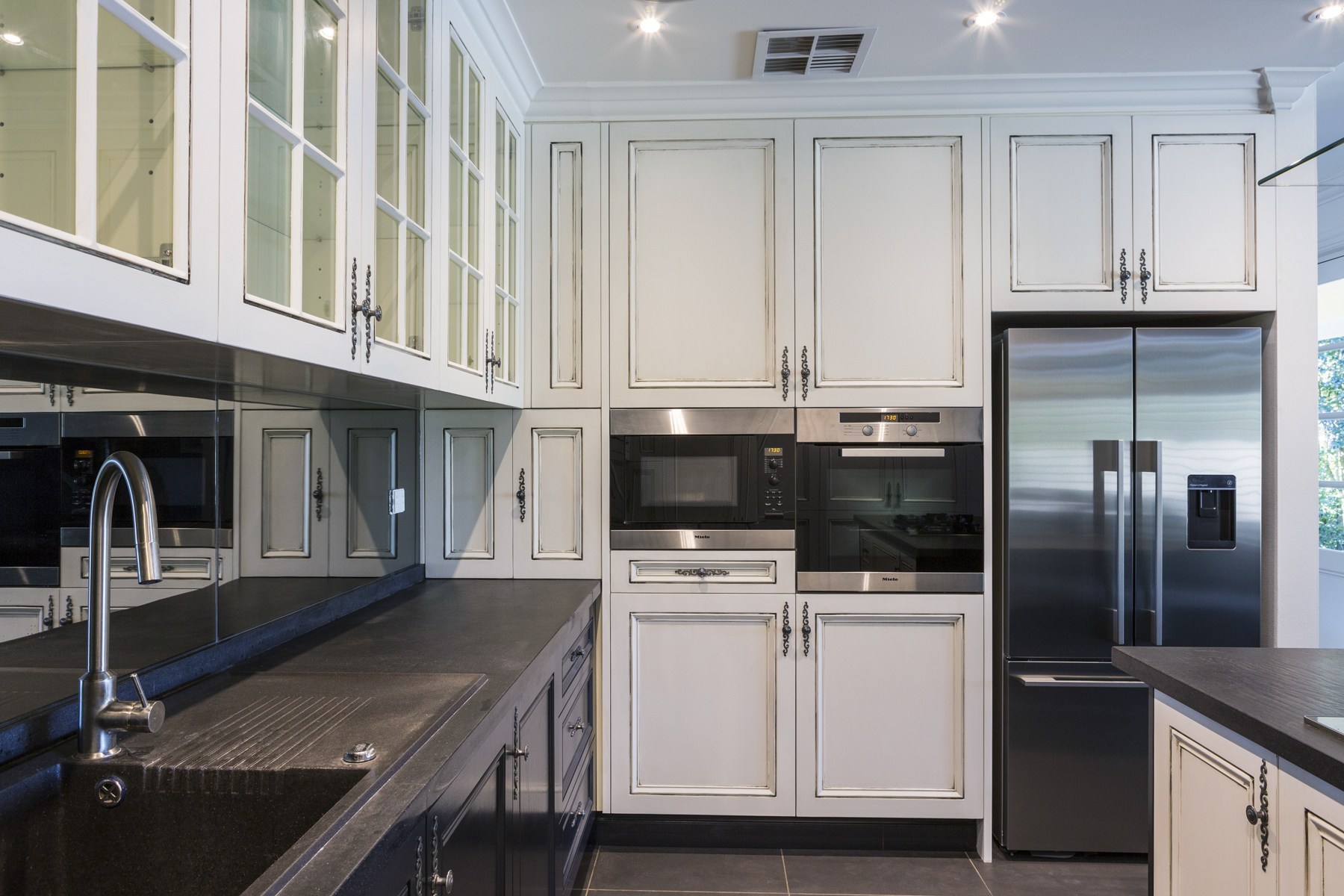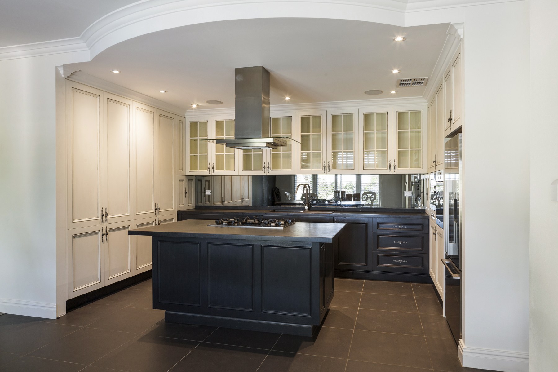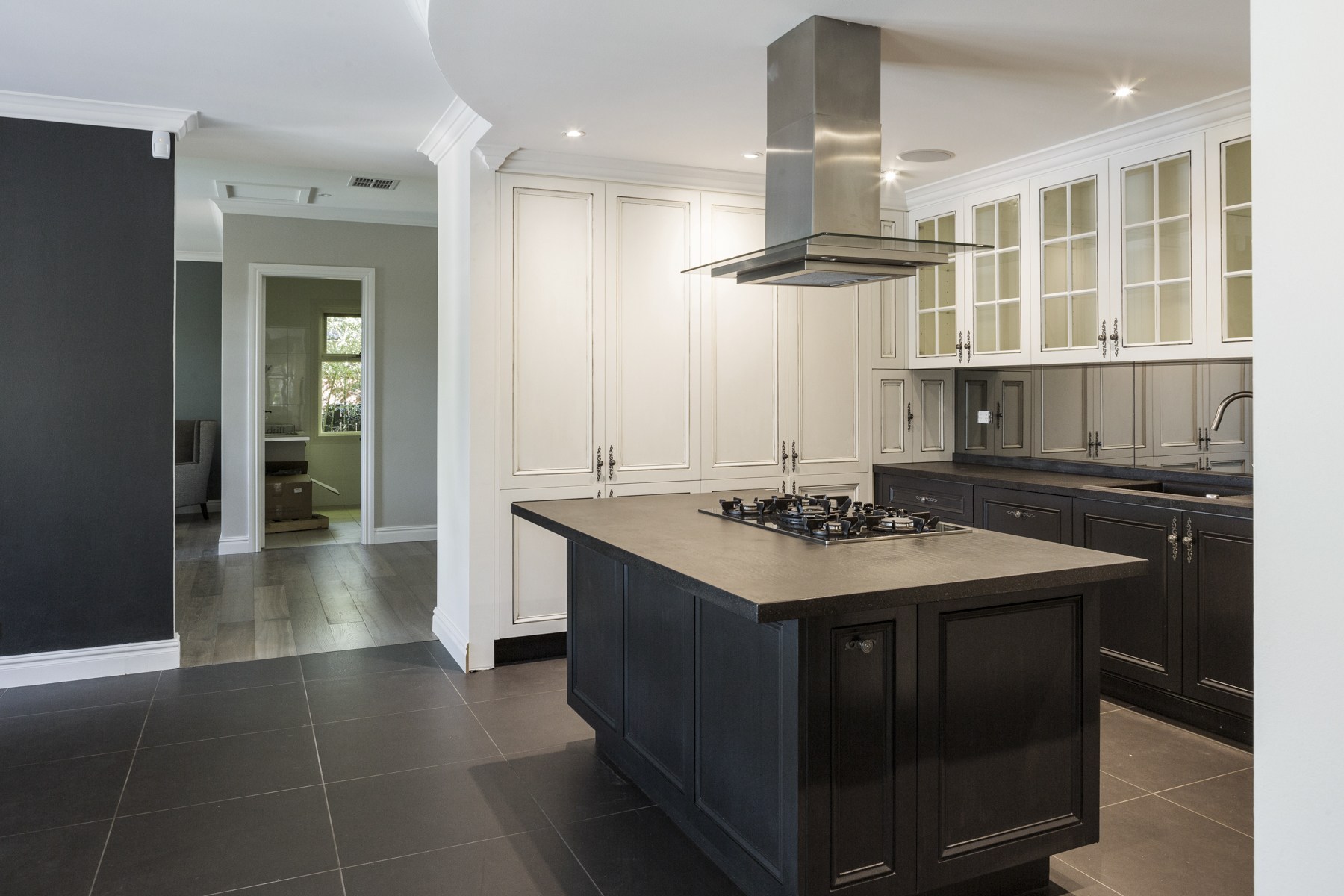 This is a very unique hand painted kitchen in Wahroonga that we have finished recently. Kitchen doors and panels are french polished and painted to a provincial aged style. Special combination of paints helped achieving an aged finish to this project. It also includes Stone Italiana benchtop Cartapietra – Grain & RocFace finish – Grigio Milano. All kitchen hardware that was used is highest quality Blum, Hettich and Hafele.