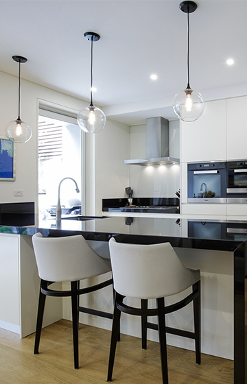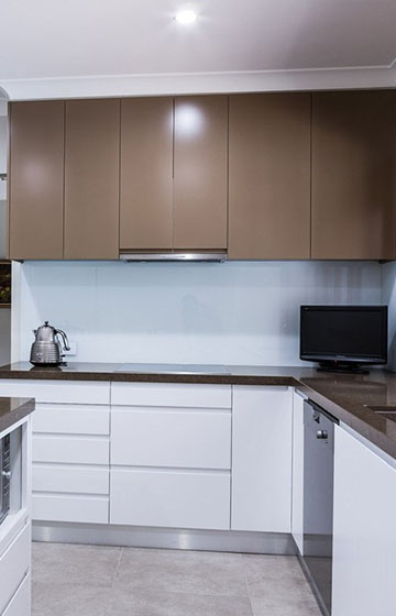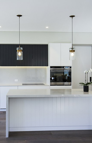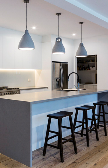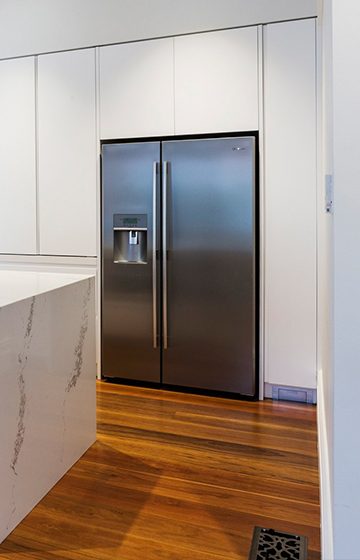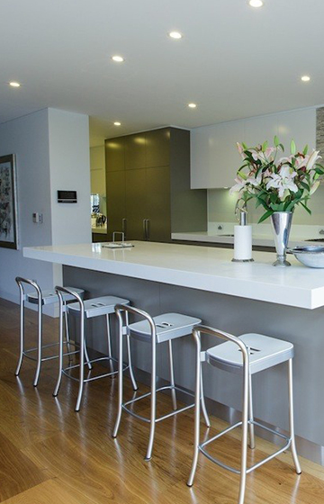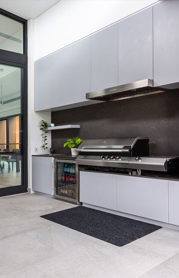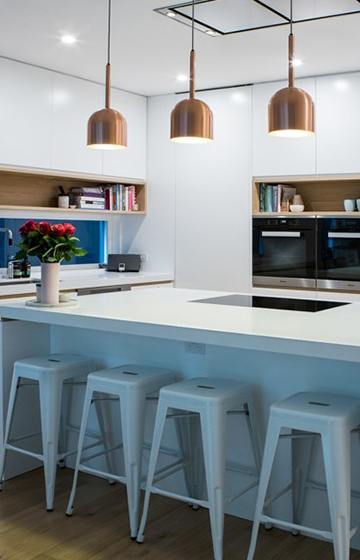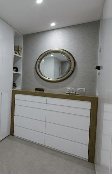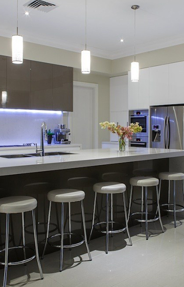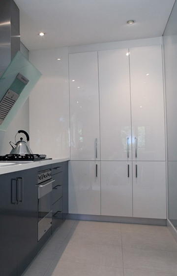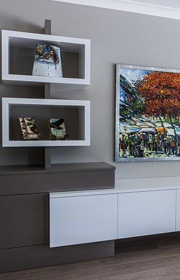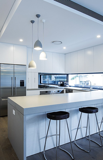 Stunning, modern and luxurious house fitout, with top line materials, polyurethane finishes, designer laminates, soft close hardware and Caesar stone Raw Concrete and Organic White benchtops. All hardware used including soft-close hinges and runners were from major manufacturers such as Blum, Hettich and Hafele.